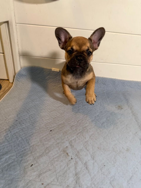 Panda is a beautiful red fawn girl with a chunky build and the cutest floppy ears. She’s been developing really well and is a strong, healthy puppy.